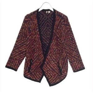 Anthropologie MOTH Open Front Cardigan Mohair Wool Zip Pockets Rainbow Petite L