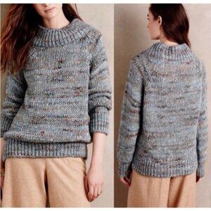 Anthropologie MOTH Sweater Blue Specks M Medium Thick Collared Alpaca Blend