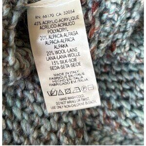 Moth misses size medium. 45% acrylic, 20% alpaca, 20% wool and 15% silk. Chunky with a breathable weave. Hand washable. Pullover style. Previously owned and in excellent, consignment shop condition. From a smoke free home. I do offer a discount on combined shipping so please let me know if you're still shopping. I'll send an invoice when you're done with shipping choices. Thanks for shopping with me.