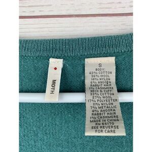 Anthropologie MOTH Sweater Womens Small Deep V Neck Green Rabbit/Cashmere