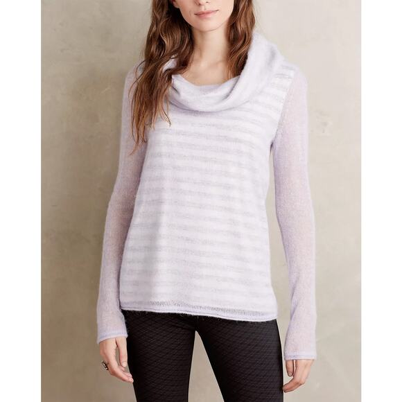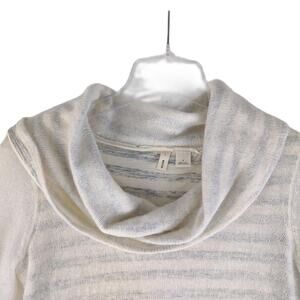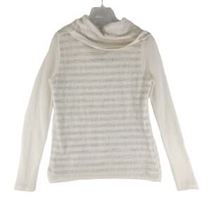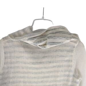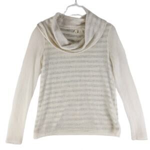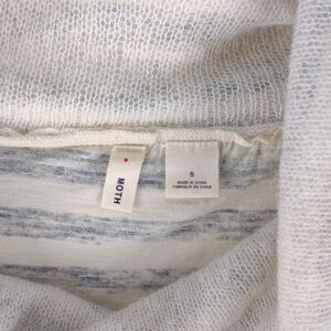 This beautiful Anthropologie MOTH Vanessa lightweight pullover features simple yards and pure shapes, sheer long sleeves, cowl neck, striped 100% cotton inner lining, and a beige sheer knit outer made of 33% Alpaca, 32% Wool, 35% Polyester. Hand wash.