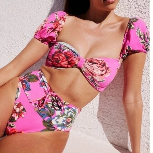 bikini set, high-waisted bikini, floral bikini, Maaji swimwear, reversible bikini, swim set, summer swimwear, adjustable straps, lace-up bikini, women's swimwear, beachwear, trendy swimwear