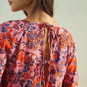 By Anthropologie Mabel mini dress combines bold floral patchwork prints with a relaxed bohemian silhouette, creating a statement piece for both everyday and event styling. Featuring puff sleeves, a tie-back neckline, and tiered hem, this dress blends cottage, festival, and eclectic vintage-inspired aesthetics. The vibrant mix of pink, purple, and green florals makes it versatile for vacations, brunch, garden parties, and concerts. Perfectly aligned with trending Poshmark feed aesthetics including boho, cottage, festival, wanderlust, artsy, retro, coquette, and whimsy, this Anthropologie dress adds color and character to any wardrobe. Pair with sandals for daytime ease or elevate with boots and statement jewelry for a bold night out look. Anthro shower
