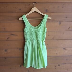 Anthropologie Mable Elenore Green Smocked Romper Small Tank Flowy Short Lime