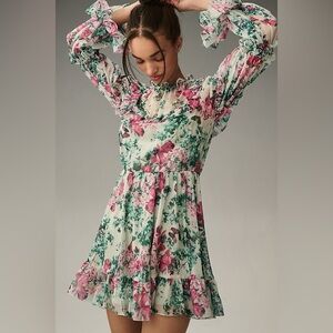 Anthropologie Mac Duggal Long-Sleeve Ruffled Mini Dress 12 NWT