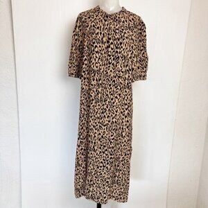 Anthropologie MacKenzie Leopard Print Midi Dress Short Sleeve Keyhole Slit Large