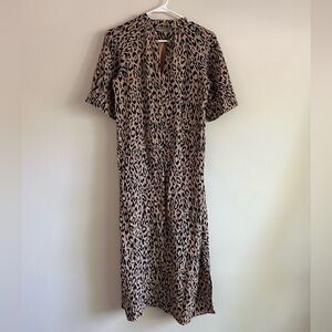 EUC Mackenzie dress from Anthropologie in a size XS. This dress has a beautiful all over leopard print. High neckline and has longer length sleeves. Midi length. No stains or flaws!