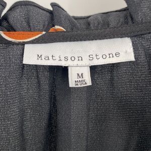Anthropologie Madison Stone Blouse Medium. Gently used condition with no visible flaws. Ruffled collar and sleeves along with bottom hem. Neck tie.