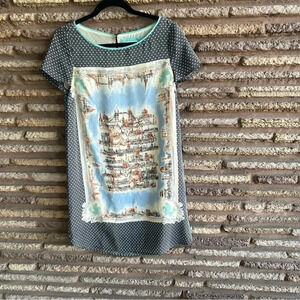 Anthropologie Maeve 100% Silk Around the Town London Cityscape Tunic Dress