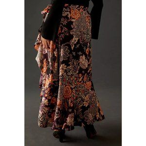 Anthropologie Maeve 1X NWT Ruffled Wrap Maxi Skirt Floral Ruffle Plus Size New