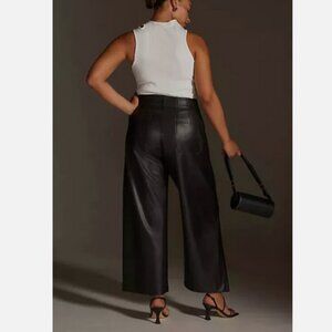 Anthropologie Maeve 22W The Colette Cropped Wide-Leg Faux Leather Pants 22 W NWT