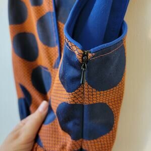 Anthropologie Maeve Rokin Dress Womens Size 6 Small - Burnt Orange Pumpkin and Blue - Fully Lined High Neck Cross Back Party Event Dress