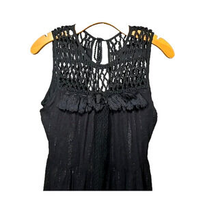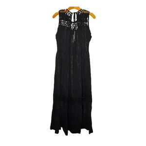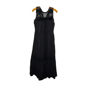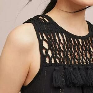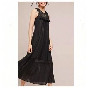 Anthropologie Maeve Abilene Dress Black Gold Shimmer Tassel Crochet Midi ALine S