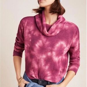 Anthropologie Maeve Ainsley Thermal Turtleneck Berry Tie Dye Long Sleeve Top