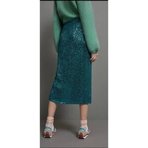 Anthropologie Maeve Alicia Sequined Midi Skirt in Green Size XS
