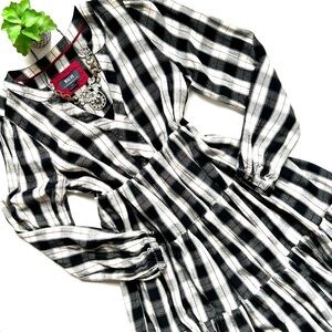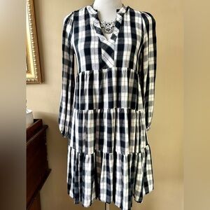 Anthropologie Maeve Amber Tiered Tunic Babydoll Dress Long Sleeve Plaid Size S