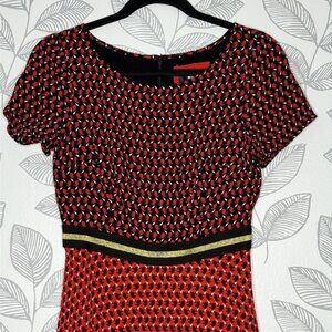 Anthropologie Maeve Amici Rabbit Print Red Dress Size 4 Career