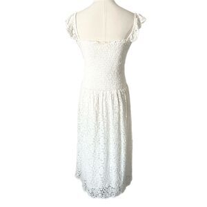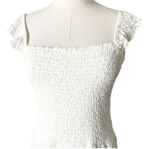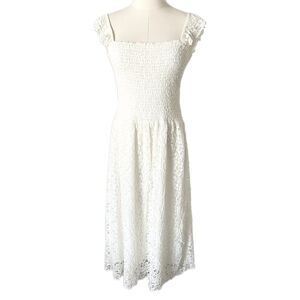 Anthropologie Maeve Anastasi Smocked Mini Dress in White Lace Size Medium