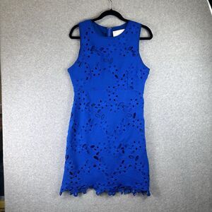 Anthropologie Maeve Arette Eyelet Sheath Blue Sleeveless Mini Short Dress Sz. M
