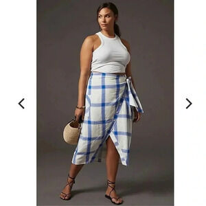 Anthropologie Maeve Asymmetric Wrap Skirt. Blue Motif Size 18W-NWT