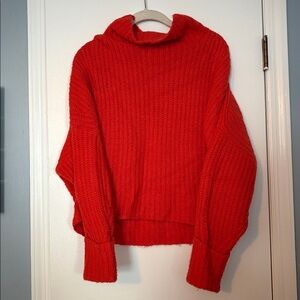 Anthropologie Maeve Athena Cowl Neck Sweater Orange Wool Blend Oversized