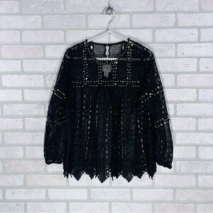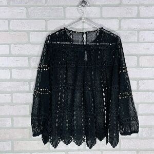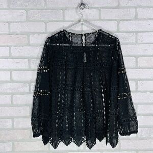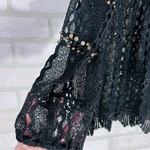 Anthropologie Maeve Auralis Black Lace Top with Grommets Size S