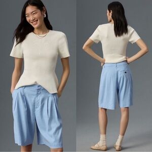 Anthropologie Maeve Avery Relaxed High-Rise Pleated Trouser Shorts Light Blue 0
