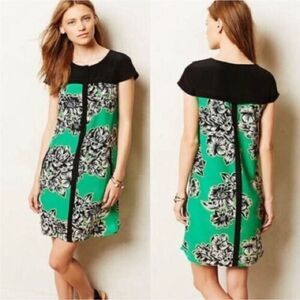 Anthropologie Maeve Ayame 100% Silk Floral Front Zip Mod Sheath Mini Dress Sz 0 in EUC with no visible flaws