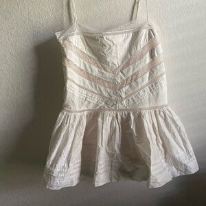 Anthropologie Maeve Balletcore Coquette Sleeveless Square-Neck Lace Mix Mini Cream Dress