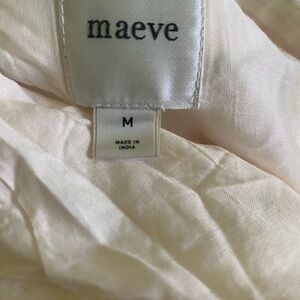 This stunning white sundress by Maeve features a sleeveless design with delicate spaghetti straps, perfect for a wedding guest or cocktail occasion. The mini dress showcases a form-fitting bodice that flares into a playful skirt, offering a chic and modern silhouette. Its textured fabric with a subtle sheen adds an elegant touch, making it a versatile choice for any stylish event.