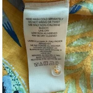 Anthropologie Maeve Balloon Sleeve Tropical Bird Button Down Shirt Yellow Size XS