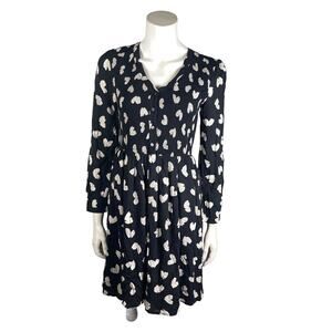 Anthropologie Maeve Banet Heart Dress Women's Small Long Sleeve Smocked Front