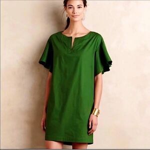 Gorgeous anthro Maeve flutter bell sleeve dress. Never been worn, no tags attached. 100% cotton. Pockets. Pullover style. Beautiful green color!