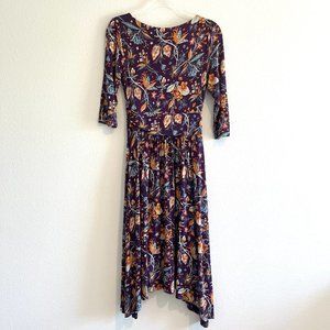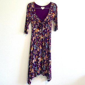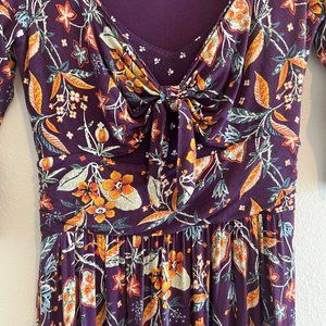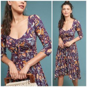 Anthropologie Maeve Beloved Dress Floral Asymmetrical Front Tie Purple Size XS