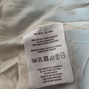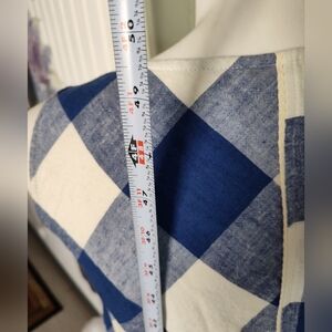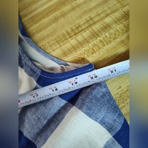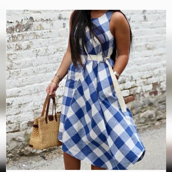 The Anthropologie Maeve Belted Gingham Check Cotton Linen Asymmetrical Dress in size Large is a stylish and versatile piece perfect for various occasions. The sleeveless dress features a round neck, a pullover closure, and a self belt, adding a unique touch to the A-line silhouette. Made from a comfortable cotton and linen blend in a blue and off-white gingham pattern, this dress is ideal for travel, casual outings, or even business meetings. Hand wash only to maintain its quality, this dress is a must-have for your summer, fall, or spring wardrobe.