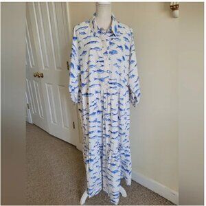 Anthropologie Maeve Bettina Shirt Dress Cotton Fish print midi size 1X.