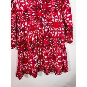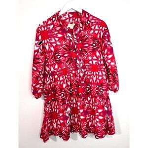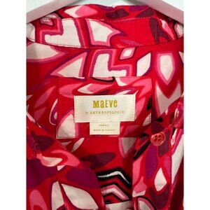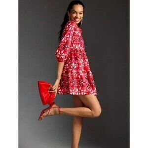 Anthropologie Maeve Bettina Tiered Mini Shirt Dress Red Motif Size XS