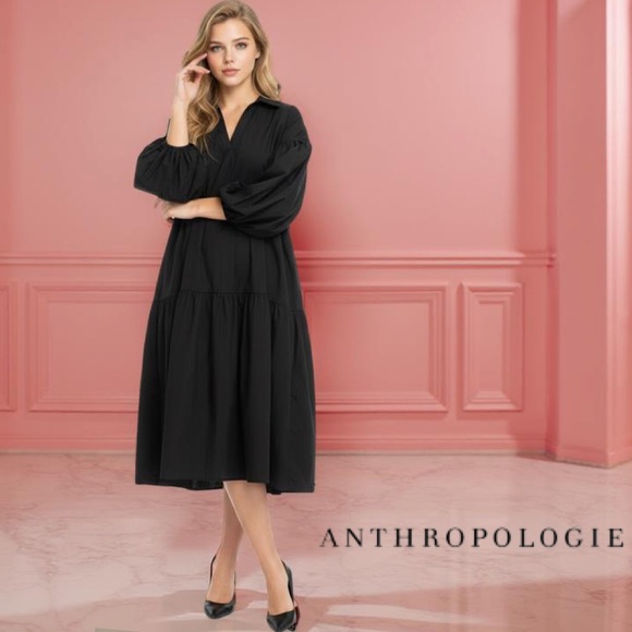 Chic black midi dress with flowing silhouette. Perfect for any occasion. Timeless style from Anthropologie.
