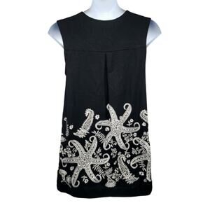 Anthropologie Maeve Black Embroidered Dress Size 6 Boho Chic V-Neck Shift Tunic