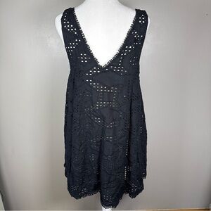 Anthropologie Maeve Black Eyelet Luci Swing Mini Dress size Small Cotton Lined
