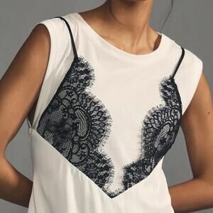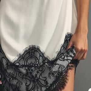 Anthropologie Maeve Black Lace Romantic Dark Coquette Slip Mini Dress Size XS