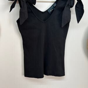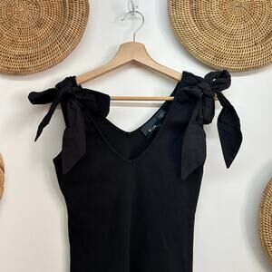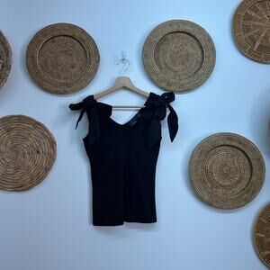Anthropologie Maeve Black Ribbed Tie Bow Shoulder Tank Top Feminine XS