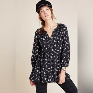 Anthropologie Maeve Black White Print Winona Babydoll Tunic