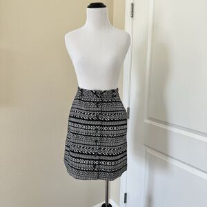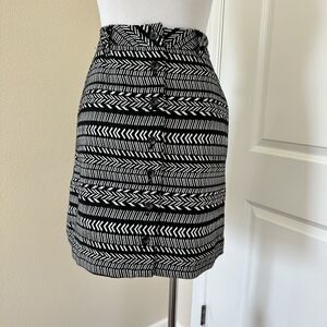 Anthropologie Maeve Black White Tribal Pattern Button Up Mini Skirt US 2