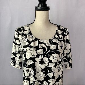 Anthropologie Maeve Black white floral print front pockets dress size 2