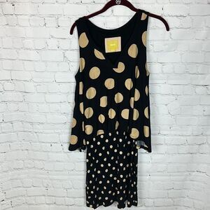 Anthropologie Maeve Black with Tan Polka Dots Dress Size XS