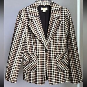 Anthropologie Maeve Blazer Sz 0 Brown Checkered Plaid Single Breasted Career EC
