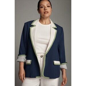 Anthropologie Maeve Blazer Women Blue Colorblock Preppy Boho Size 3X Plus NWT