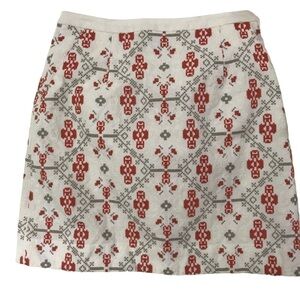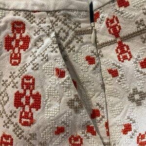 Anthropologie Maeve Blomma Embroidered Cross stitch Pom Pom skirt size…