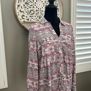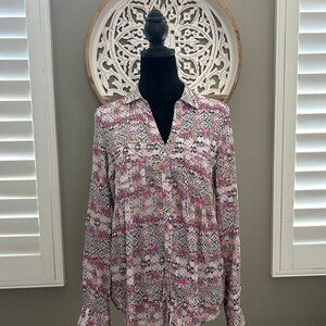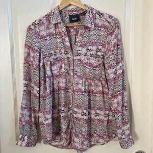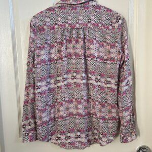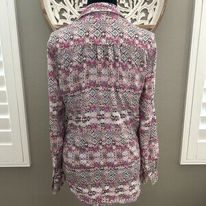 Anthropologie Maeve Blouse Pink Islet Roll Tab Sleeve Geometric Print Shirt SZXS